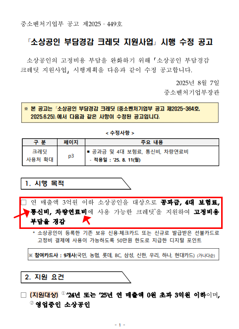 2025 소상공인 부담경감 크레딧 확장 지원 총정리 (통신비·주유비 포함)